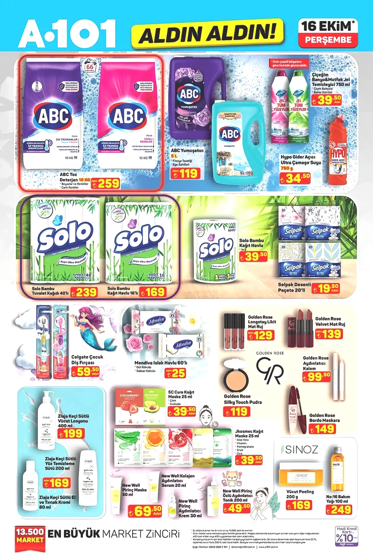 16 Ekim 2025 A101 Aktüel kataloğunda sayfalar artmaya devam ediyor ve indirim oranları heyecan verici. Katalogun altıncı sayfasında Piere Cardin Paris markasına ait muhteşem ürünler bulunuyor. 8 başlıklı saç şekillendirme ürünü 5999 TL’den satışa sunulurken, IPL epilasyon cihazı ise 1999 TL’den alıcıları bekliyor. Bu markaya ait birçok kişisel bakım elektroniği de sıralanmaya devam ediyor. Manikür seti, yüz temizleme cihazı, LED makyaj aynası, kirpik kıvırıcı, kırışıklık giderici masaj aleti, cilt bakım cihazı, epilasyon cihazı ve göz altı bakım cihazı gibi ürünler oldukça uygun fiyatlarla A101 marketinde. 300 TL ve üzeri alışverişlerde 6 taksit fırsatının yanı sıra, sayfa devamında ayak masaj aleti, 10 başlıklı masaj aleti, postür düzeltme cihazı ve boyun-ağırlık masaj aleti gibi uygun fiyatlı ürünler de mevcut! Çift kişilik ve tek kişilik seçenekleriyle mikrofiber yorgan da yine A101 marketlerinde sizleri bekliyor. Katalogun 6. sayfasında tekstil ürünleri, oyuncu ürünleri ve düzenleyiciler sıralanırken, 7. sayfada mutfak ürünleri var. Onlarca üründe indirim sunan A101; 8. sayfada piyano fırsatıyla karşımıza çıkıyor. Piyano fiyatı 17999 TL, tam boy keman 2499 TL ve tabureli dijital bateri seti 10999 TL’den satışta. 9. sayfasında çeşitli oyuncaklar, 10. sayfasında ise terlikler yer alıyor. 11., 12. ve 13. sayfalarda ise A101 Aktüel 16 Ekim 2025 kataloğu temel tüketim ve atıştırmalık ürünlerini sergiliyor. Daha fazlası için A101 fırsatlarına göz atmayı unutmayın. Ayrıca, sitemizde sizler için aktüel katalogları paylaşıyoruz. Gelecek haftadan beklentileriniz nasıl? İndirimler hakkında düşünceniz nedir?